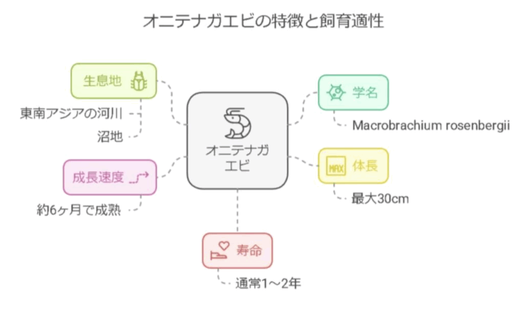 オニテナガエビは環境変化に敏感なため、安定した水質管理が重要です。